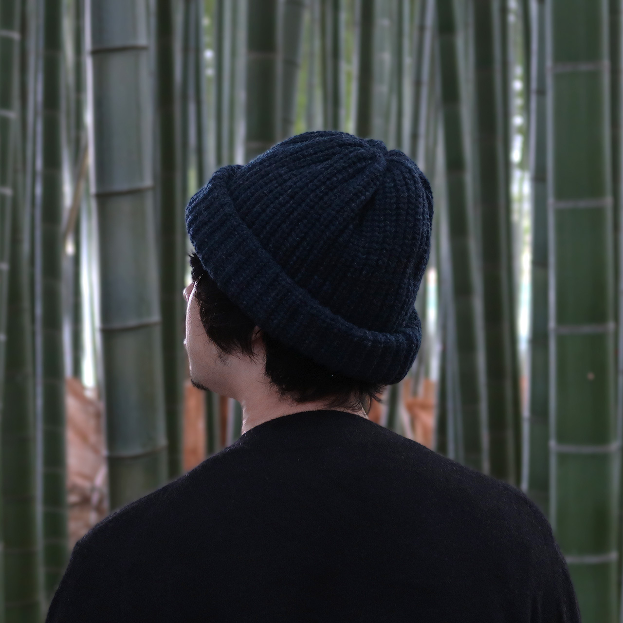 良質なウールを贅沢に使用。肉厚でボリューミーなフォルムが特徴的なニット帽。