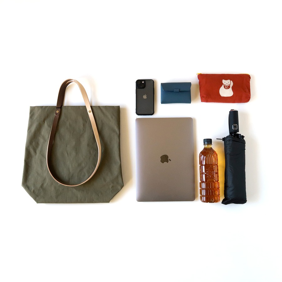 マチがたっぷりあるので、財布やペットボトル、折り畳み傘、ノートパソコンも収納可能です。