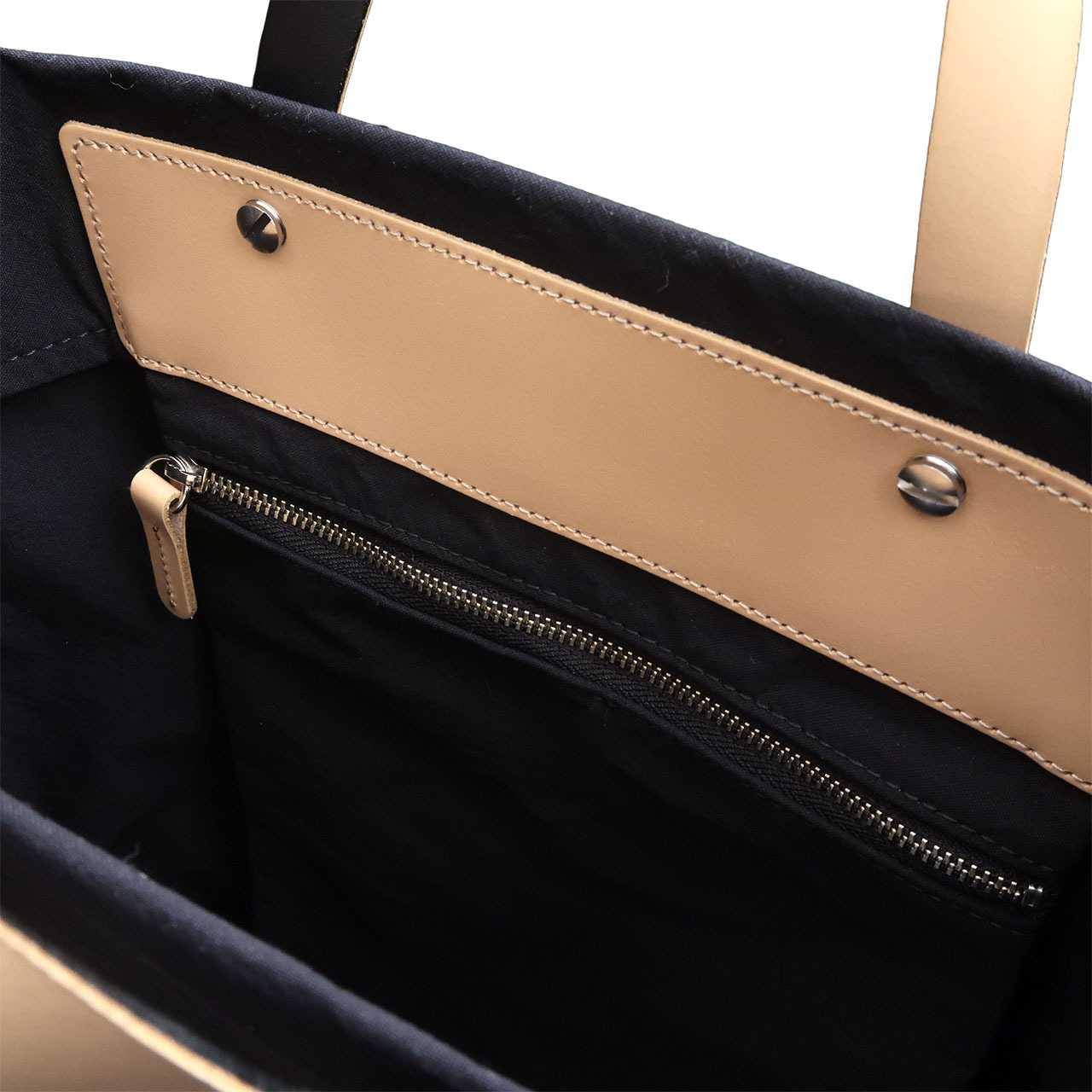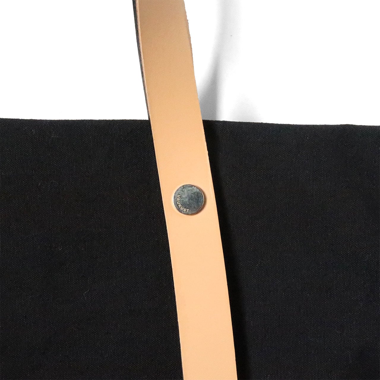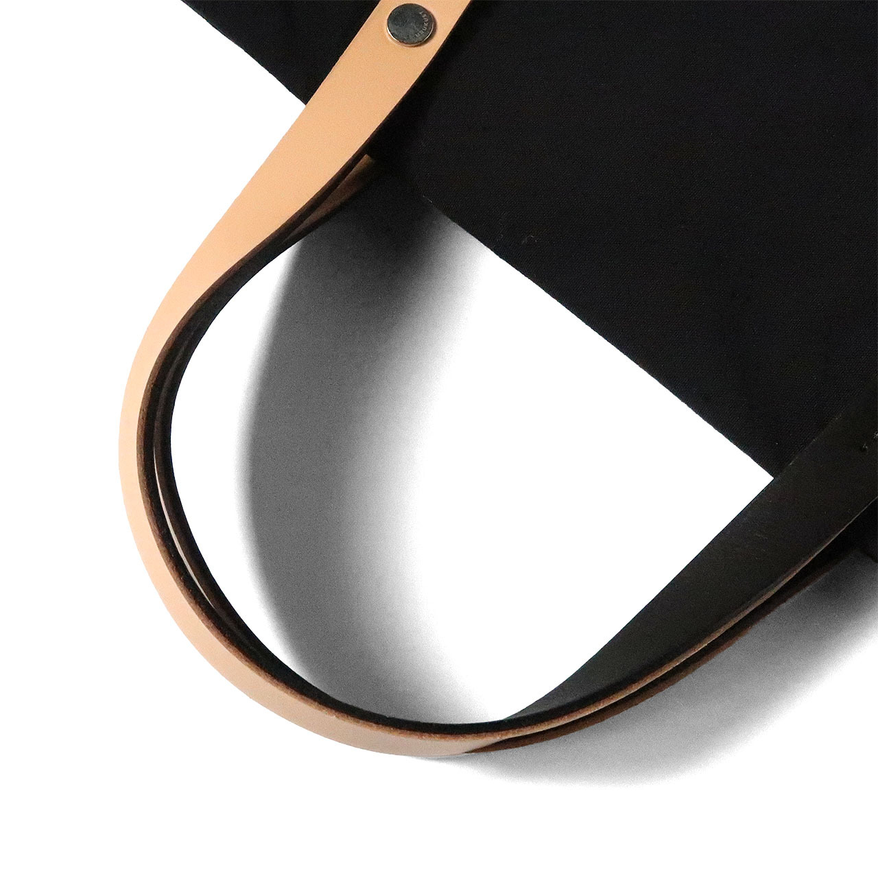 ハンドルはクロム鞣しの牛革を使用。コンブナイロンとまではいかないですが、こちらの革も水濡れや汚れがつきにくい仕上げをした革となります。