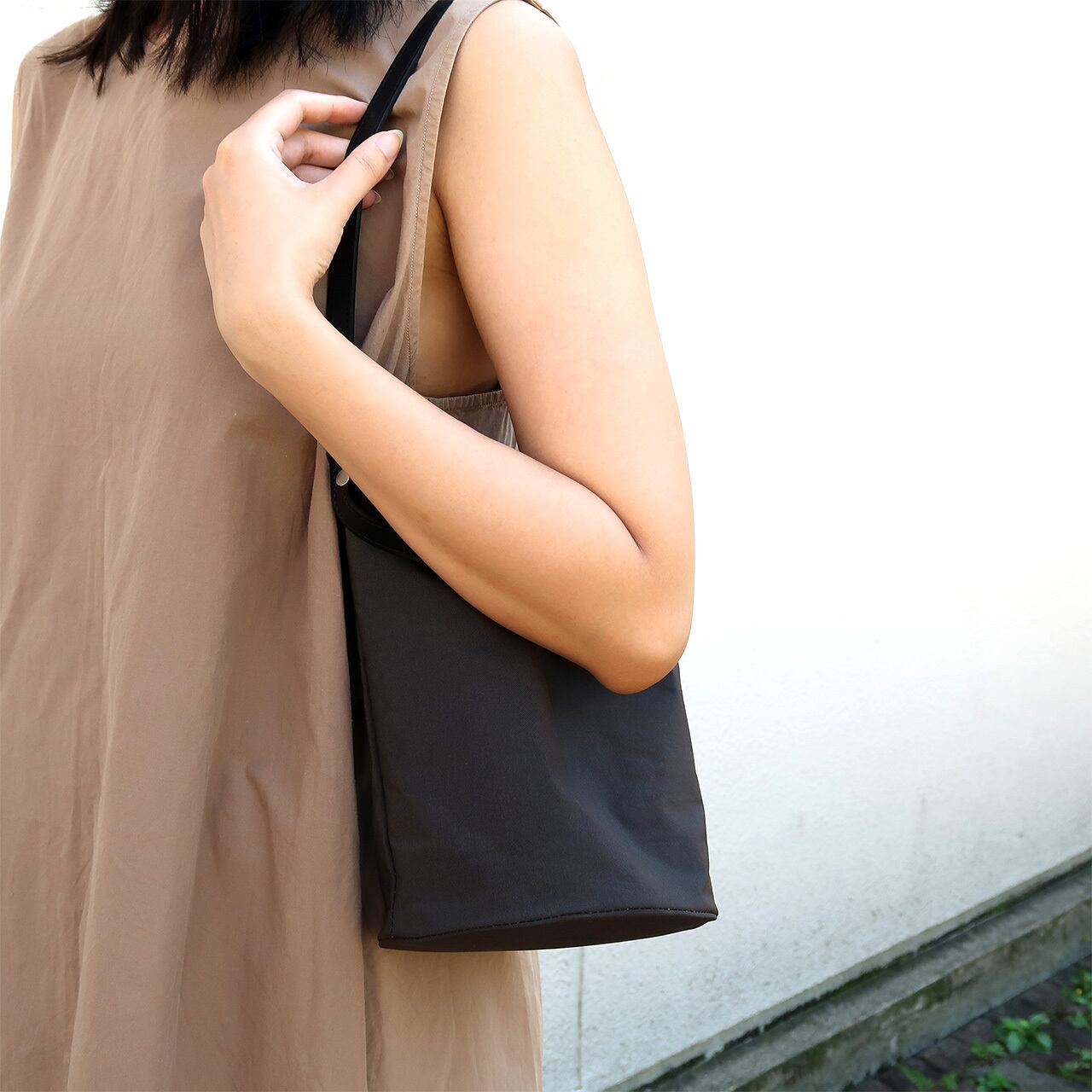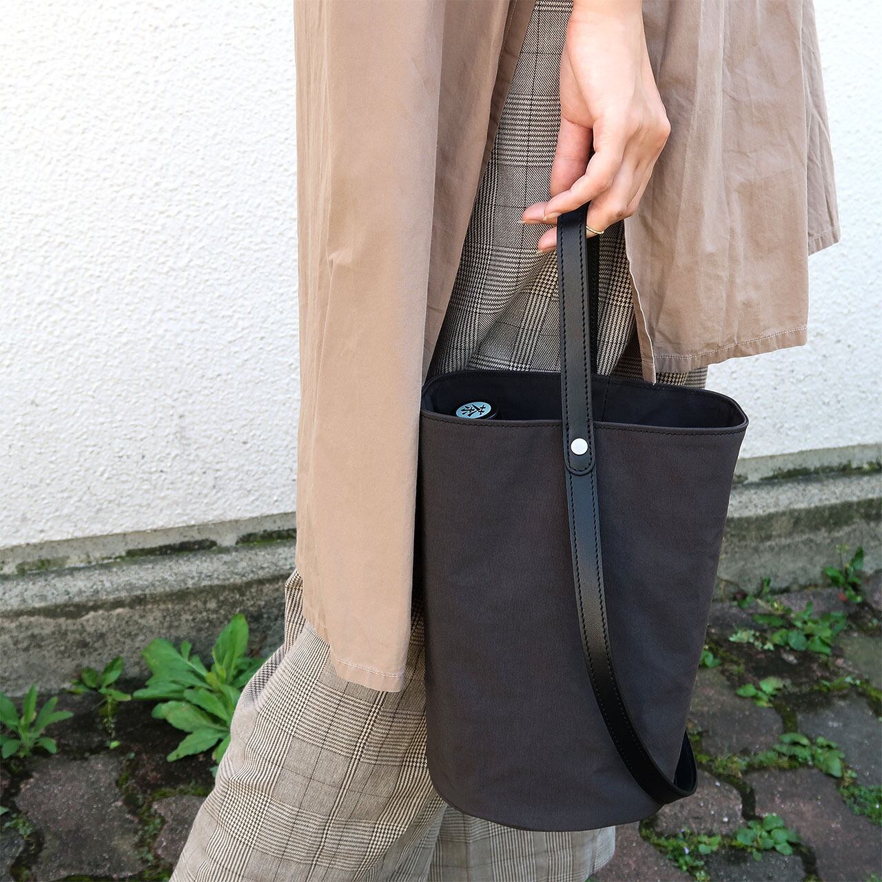 以前にトートバッグを買い付けさせて頂きましたが、この度新作が登場しまして、こちらバケツのような筒形のシルエットが特徴的なワンショルダータイプとなります。