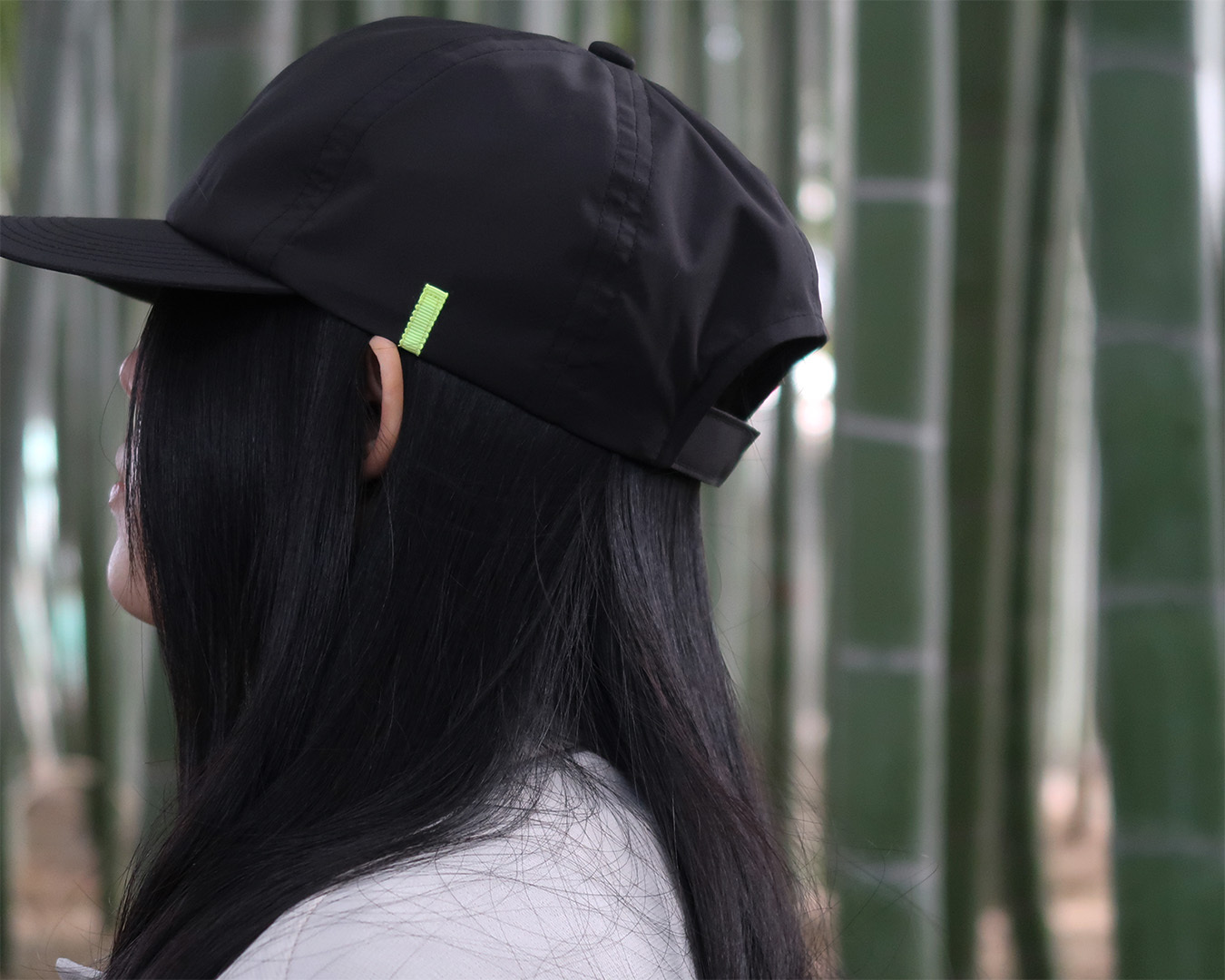 本格的なアウトドアシーンにも耐えうる、3層構造の高性能ポリエステル生地を使用したキャップ。
