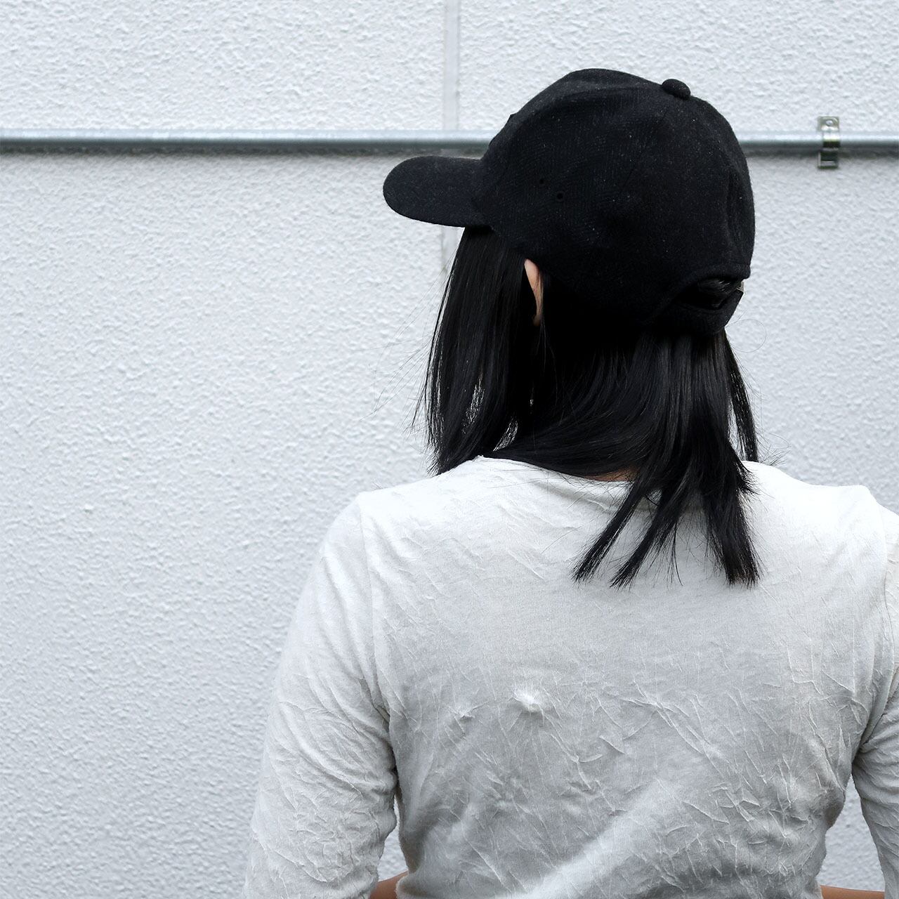 つばも含めてキャップ全体が顔回りをキレイに包み込むような、ミニマルなデザインという印象。ちょっと小顔効果も期待できるのでは?そんな風にも感じられる何ともおさまりの良いキャップです。