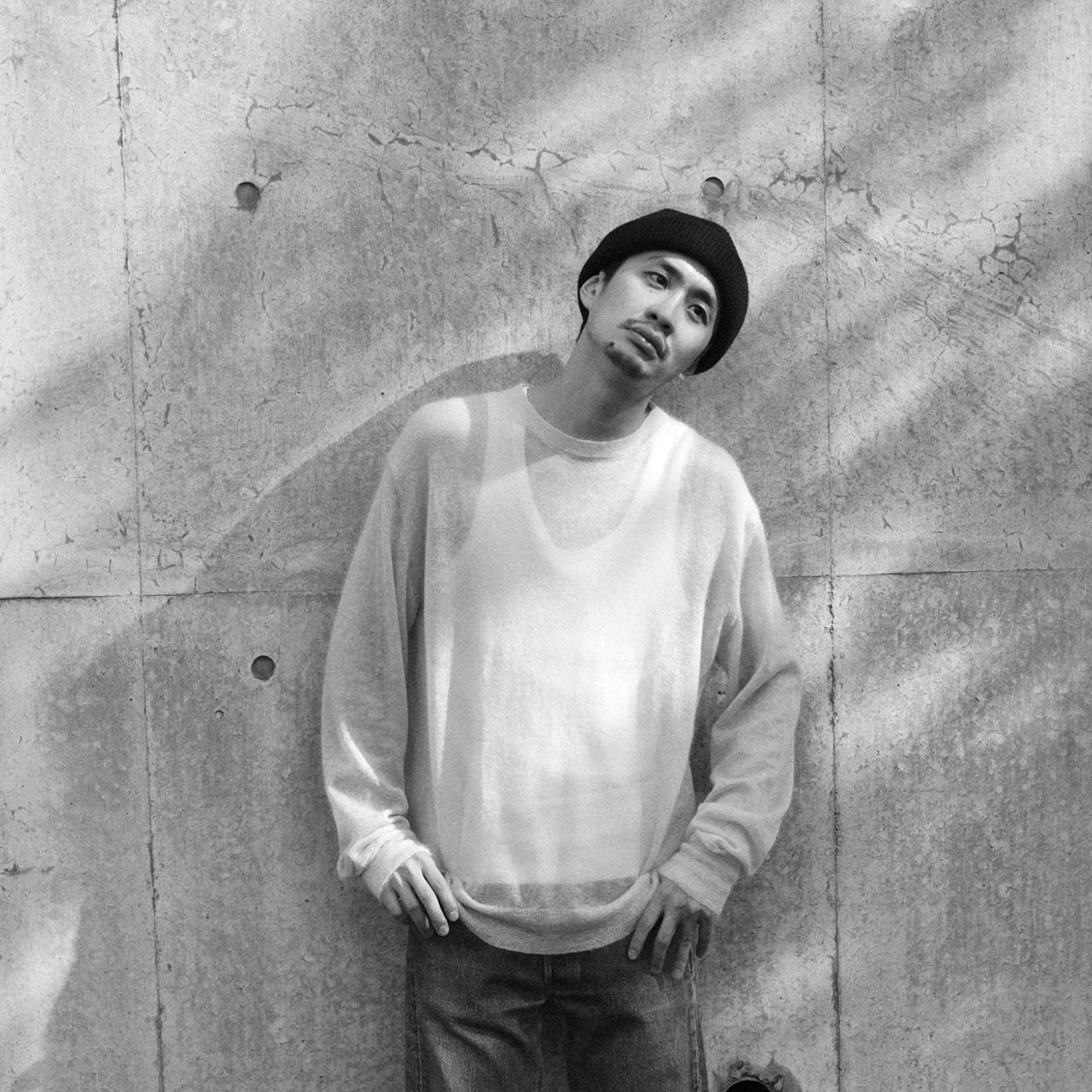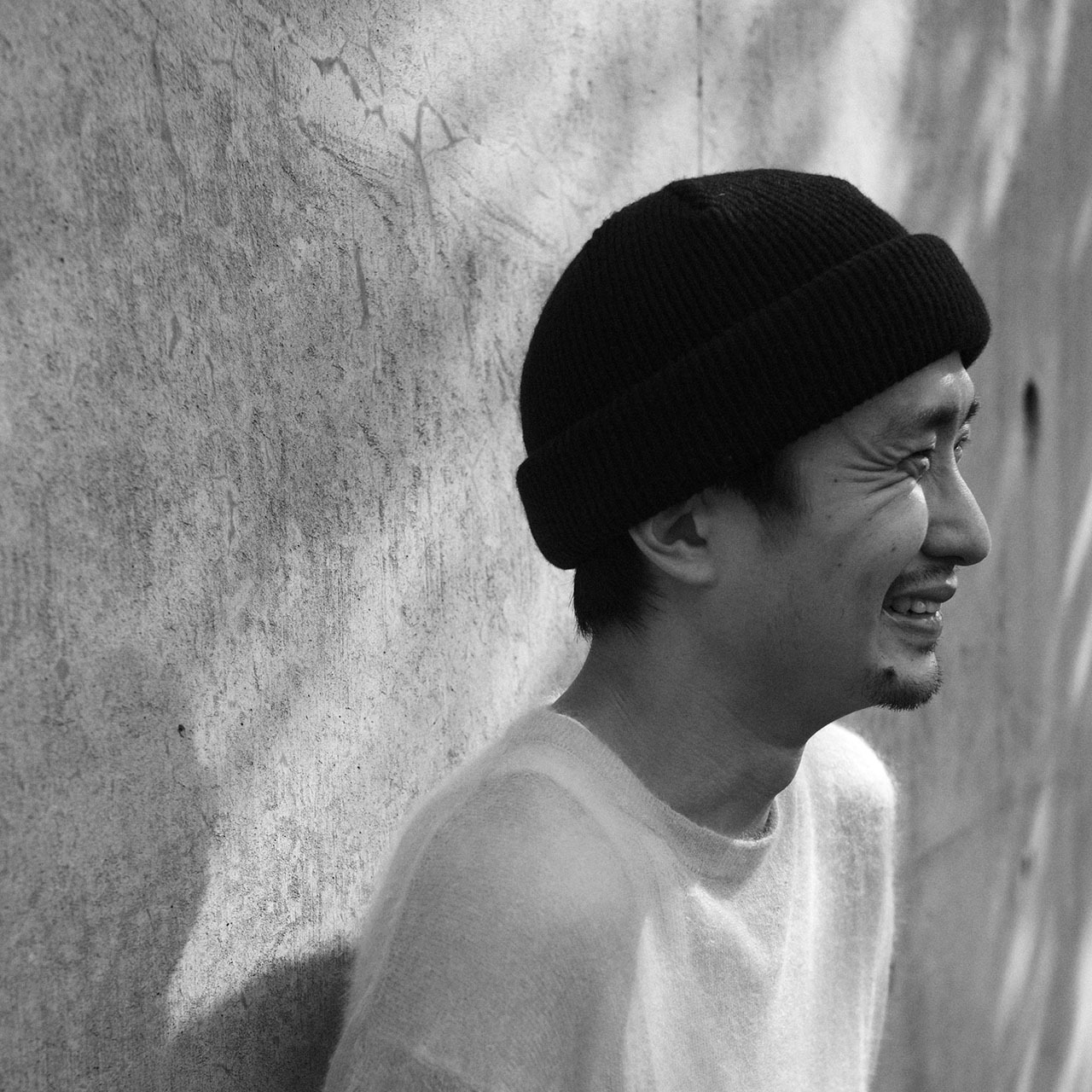 ロールキャップのような浅い被りのデザインが特徴のニットキャップ。
