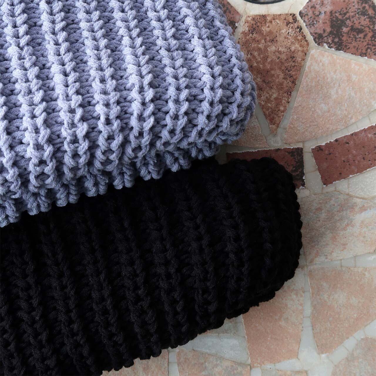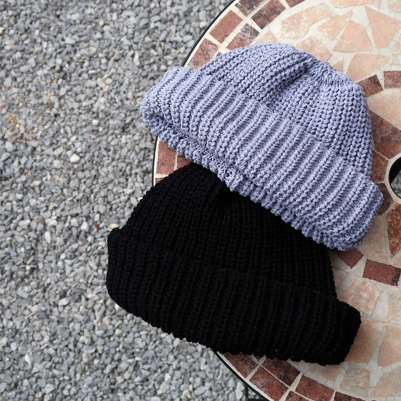 贅沢に使用した肉厚なニット生地からなる、ボリューミーなシルエットが特徴的なニット帽。